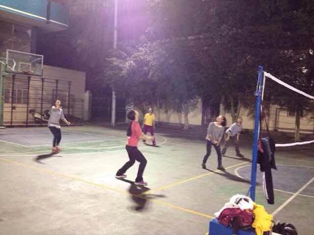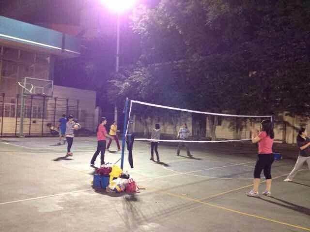 10月21日晚,美术学院女子排球队在篮球场进行了第二次训练。