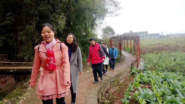 夹江县界牌镇凤山村是我国新农村建设的典范村,老师们到那里后,边看李花和桃花,边考察新农村建设和乡村旅游规划情况。对当地新农村建设和乡村旅游发展情况纷纷各抒己见,给予了高度评价。