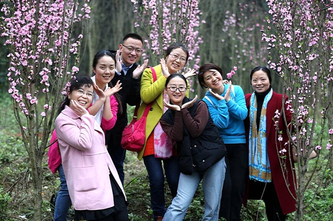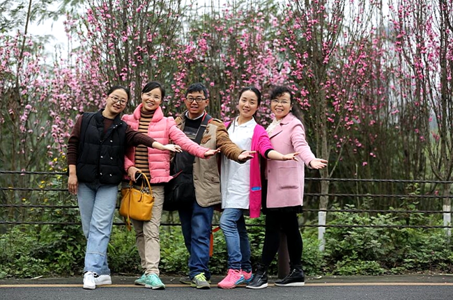 春天的绿心路是各种花儿争相斗艳的季节,时值三月,绿心路从芦山到红旗塘这一段的桃花正开的让人心醉。计科学院组织全体教职工从绿心公园的南停车场出发,一路徒步爬山,说说笑笑,飘着沁人油菜花香味春风吹来,粉红的桃花迎风飘落,花在风中舞,人在花中游。好一副春意盎然,美不胜收的景象。爱美的老师们在花丛中合影留恋,享受美好的活动时光。大家一路走到红旗塘服务区,在那里休息聚餐,晚饭结束后返回。