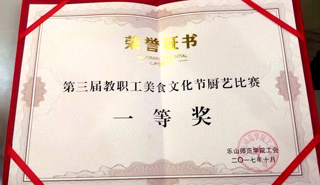 10月12日下午,由校工会主办的第三届美食文化节在百果苑食堂三楼举行,物电学院分工会组织的参赛代表队在本次美食节厨艺大赛中荣获一等奖。