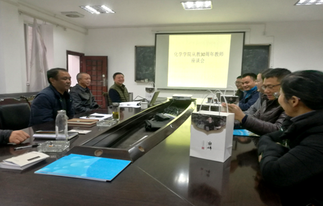 11月24日,化学学院分工会在学院会议室开展了化学学院从教三十周年老教师座谈会,座谈会邀请到了学校副校长张元勤、实验设备处处长向清祥、化学学院党总支书记熊俊如以及专任教师刘凡、罗云、吕申壮、杨孝容、王应红等八位从教超过三十年的老教师。学院领导班子参加了座谈会。