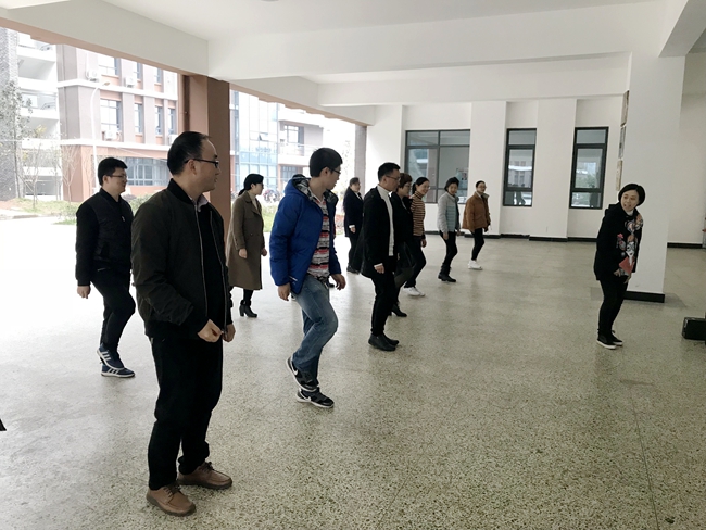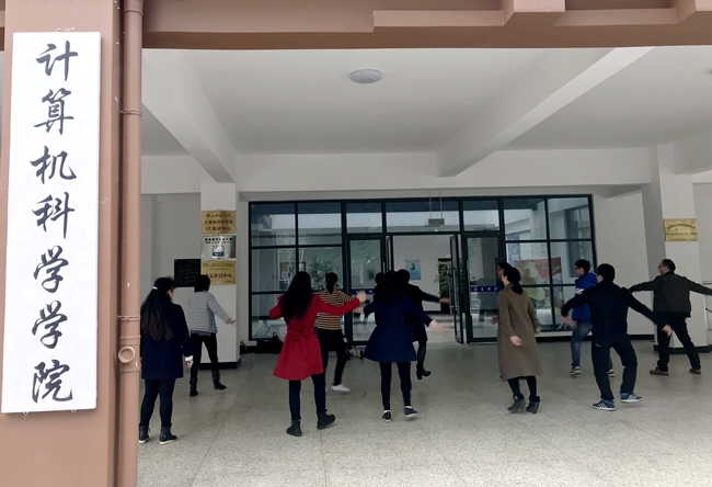 为了呈现精彩的元旦晚会节目,计科学院携数信学院以饱满的热情积极进行着元旦节目排练。对于理工科老师来说,近5分钟的舞蹈表演难度巨大,因此,近两周来,老师们利用中午和周末休息时间,认真学习舞蹈动作,一步一步地从动作僵硬到娴熟自然。动作熟练后,老师们又开始合音乐、排队形,为了完整流畅地展示藏族舞蹈,老师们利用课间休息时间几人为一组,抓紧每分每秒认真排练。