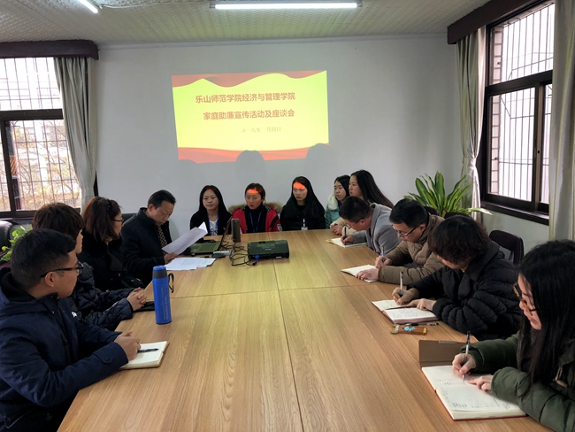 2018年1月4日,经管学院分工会在学院办公楼会议室开展了“廉洁相伴、幸福同行”为主题的家庭助廉活动宣传及座谈会。学院党总支书记彭巧胤、副院长胡亚会、科级以上党员干部、分工会委员、教师代表和学生党员代表参加了座谈会,座谈会由分工会主席王付军主持。