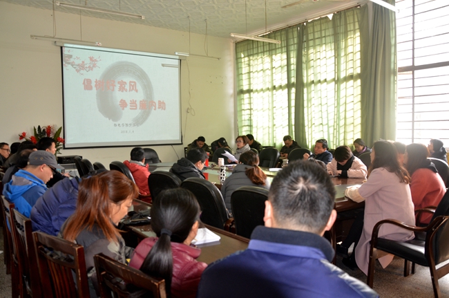 为进一步倡导廉洁家风,充分发挥家庭在党风廉政建设中的积极作用,1月4日上午,物理与电子工程学院分工会在德馨楼二楼会议室组织了以“倡树好家风、争当廉内助”为主题的“家庭助廉”教职工政治理论学习。此次学习由分工会主席赵清组织,学院全体教职工参加。