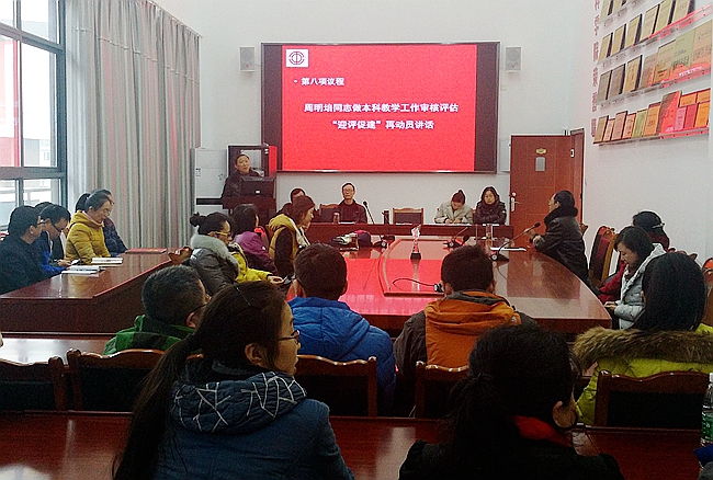 最后,计科学院党总支书记周明培进行了本科教学工作审核评估“迎评促建”再动员讲话,对学校本科教学工作审核评估方案和计科学院评建工作方案再次进行了详细解读,他指出:本科教学工作审核评估作为学校2017年和2018年的中心工作,事关学校改革和发展大计,将对学院今后的发展产生深远影响,全院教职工一定要按照学校和学院的安排部署,扎实推进各项“迎评促建”工作,确保学校本科教学工作审核评估工作目标的完成。