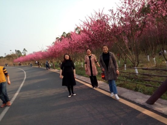 当天下午,春光明媚,大家从学院办公楼三三两两步行出发。前往绿心路,沿绿心环线一路前行,每一眼都有花,每一步的景又都不一样,人们呼朋引伴、纷至沓来。一路欢声笑语,聊工作、聊生活、聊家庭。在紧张忙碌的工作之余放慢脚步,与大自然亲近,与同事增加感情。