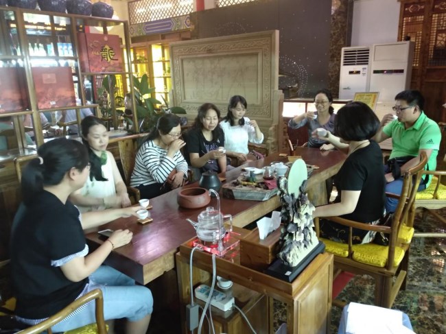 为加强非师范实践教学基地建设,6月13日下午,教务处工会小组一行来到我校实践教学基地九天茶馆进行考察交流。