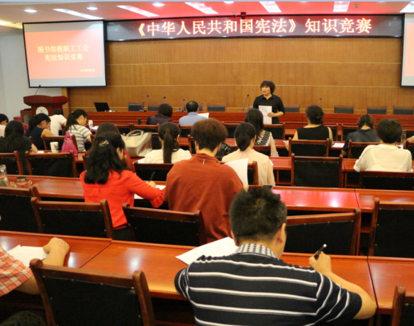 为增强会员的法治观念,提升法治意识,引导会员学习宪法、尊崇宪法,新学年伊始,9月6日下午图书馆分工会组织会员在5楼学术报告厅开展了宪法知识竞赛活动。