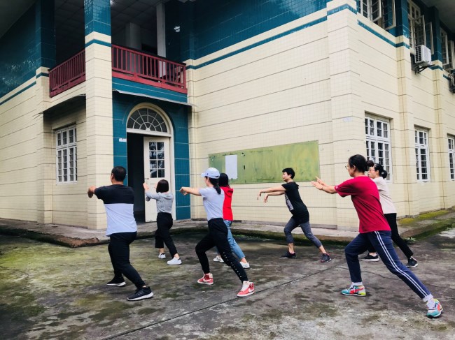 会后武术与搏击教学俱乐部曾祥义、杨文铭进行了 “太极二十四式”的进行培训,各位工会会员都积极参与认真学习。