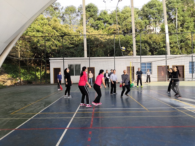 为了丰富我院教职工的业余生活,缓解教职工们的工作压力,我院于2018年11月1日下午在特教楼D幢旁风雨操场举行了教职工气排球友谊赛,经管学院党总支书记彭巧胤,副院长胡亚会,实验教学管理科科长、分工会主席王付军及全体教职工参加了此次活动。 本次气排球友谊赛共分为两组,一组由彭巧胤带队,另一组由胡亚会带队,分别由胡亚会和王娴两位老师担任教练。此次友谊赛采取五局三胜制,每队队员油三女两男组成,目的在于训练所有的女队员,提高她们的气排球技能水平。在赛场上,教职工们本着“友谊第一,比赛第二”的原则,互相尊重,互相学习,队员之间配合默契。每一局比赛结束后,教练总结经验并为队员加油打气,准备下一局比赛。每位队员都拿出自己最好的精神面貌,愈战愈勇,兴致高涨,赛出了水平,赛出了风格。在决胜局时,胡亚会教练亲自上场,将比赛的气氛带入高潮,时刻都如赛点一般精彩。最终一小组以3:2战胜二小组取得胜利。本次比赛不仅展现了教职工们顽强拼搏,善于合作的精神面貌,同时也增强了老师之间的合作交流和集体凝聚力。比赛结束后,学院领导为参与的老师们发放礼品。同时全体老师到塘湾农家聚餐欢聚一堂,在聚餐过程中,老师们还在不断的交流今天气排球友谊赛中的心得和体会 ,希望分工会以后多组织这样的活动,男教师作为陪练加强对女教师气排球技战术水平的提高,培养更多的新人,争取明年取得更好的成绩。