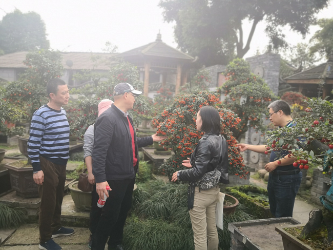 老师们参观了正在建设中的乐山奥林匹克中心和学校新校区,对新校区的建设充满了期待。随后来到“雅乐居”内盆景园林,对园林中的植物“乌柿”、“火棘”的特性、修剪成型过程、病虫防治进行了讨论交流。此次活动在大家的欢声笑语中圆满结束。