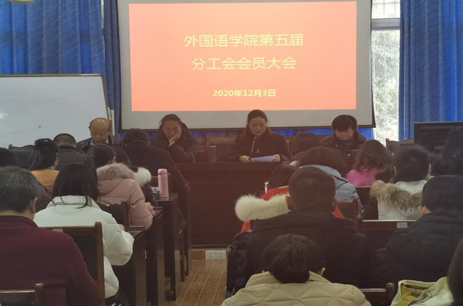 根据《中华人民共和国工会法》《中国工会章程》乐山师范学院二级教职工大会二级教职工代表大会实施细则试行有关规定和要求,为充分发挥广大教职工积极参与学院事业发展各项工作,尊重和维护教职工权益、教职工的知情权和参与权,充分发挥教职工民主参与、民主管理、民主监督作用,经外国语学院党总支委员会讨论决定,并报学校校工会、校教代会同意,2020年12月3日下午,外国语学院顺利召开第五届工会会员大会,会议进行了学院分工会换届暨二级教代会换届选举大会。大会由总支副书记吴小彦主持。