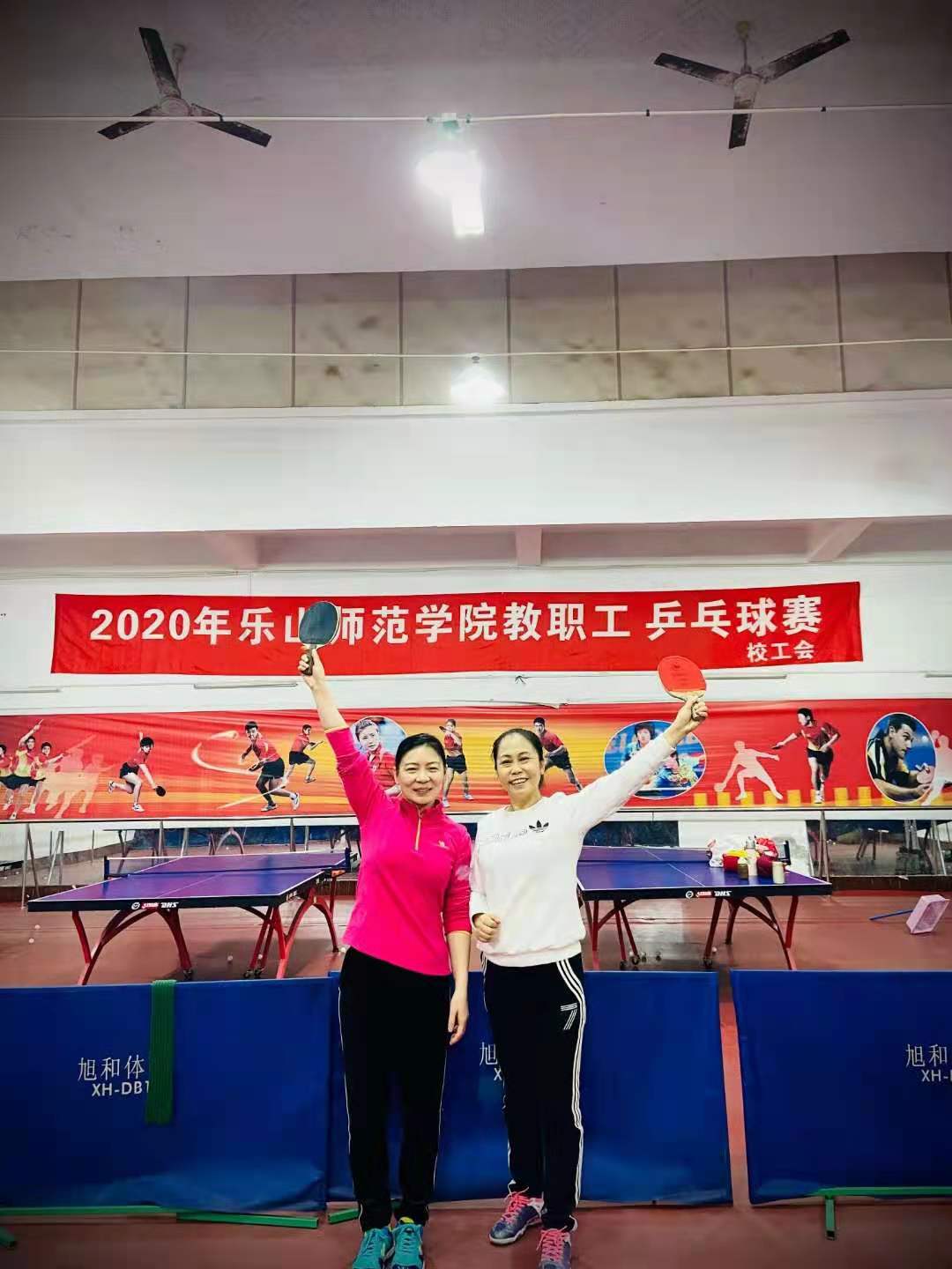 经管学院分工会文丽萍和邓健老师荣获乒乓球女子单打冠亚军