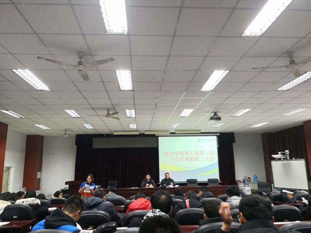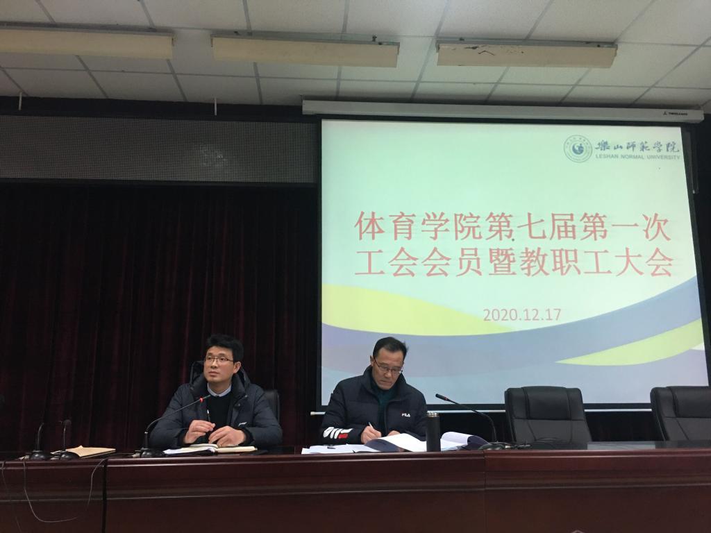 根据《中华人民共和国工会法》、《乐山师范学院二级教职工代表大会实施细则》等有关规定,发挥教职工参与民主管理、民主监督作用,经体育学院党总支讨论决定,并报校工会、校教代会同意,2020年12月17日下午,体育学院在弘一楼412召开了第七届第一次工会会员暨教职工大会,会议由党总支副书记(主持工作)钟大勇主持。
