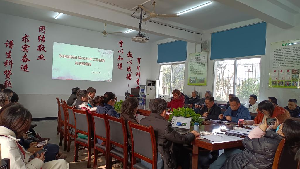 会议从五个方面进行:一是副院长农向作2020年生命科学学院工作报告和财务工作报告;二是党总支书记唐梅从意识形态、经济廉洁、仪器设备采购三个方面对全体教职工进行廉政谈话;三是副书记杨益通报2020年生命科学学院分工会活动开展及会费收支情况;四是全体教职工选举生命科学学院新一届分工会主席、委员;五是全体教职进行2020年度述职及评优。