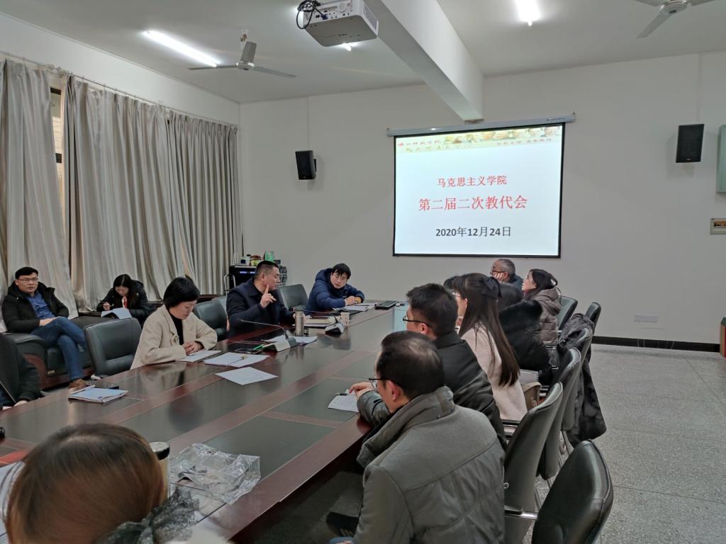 12月24日,马克思主义学院在学院办公室召开二级教代会。会议由马院党总支书记李涛主持。