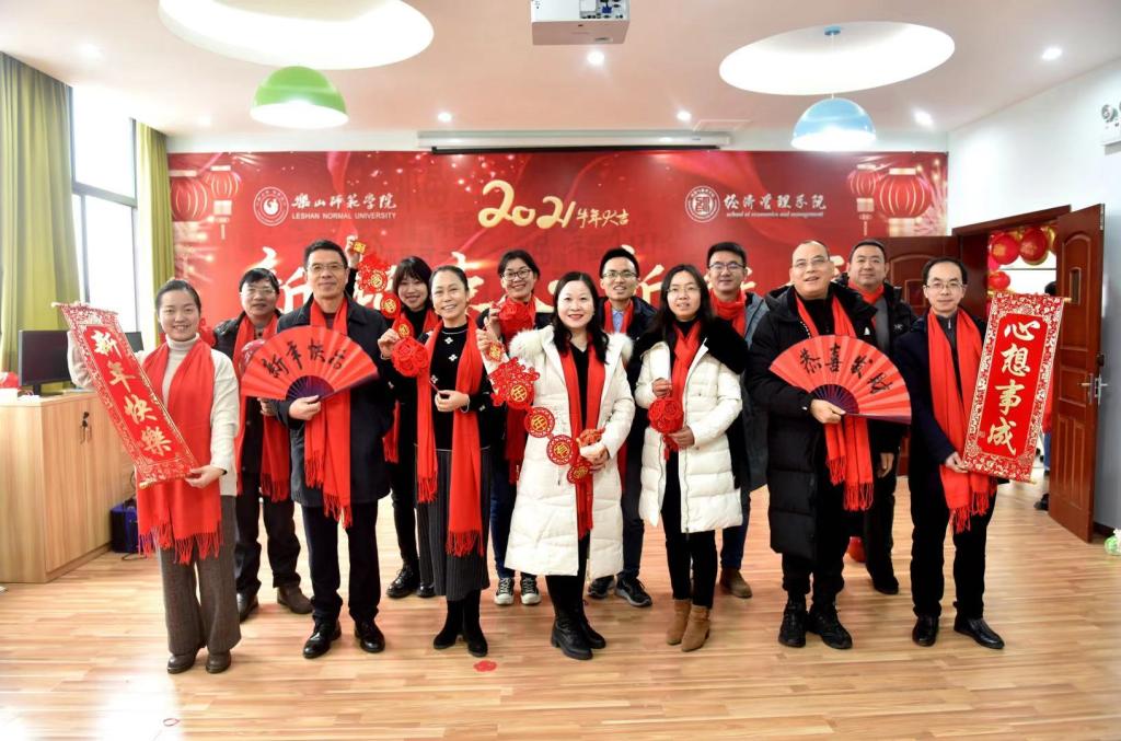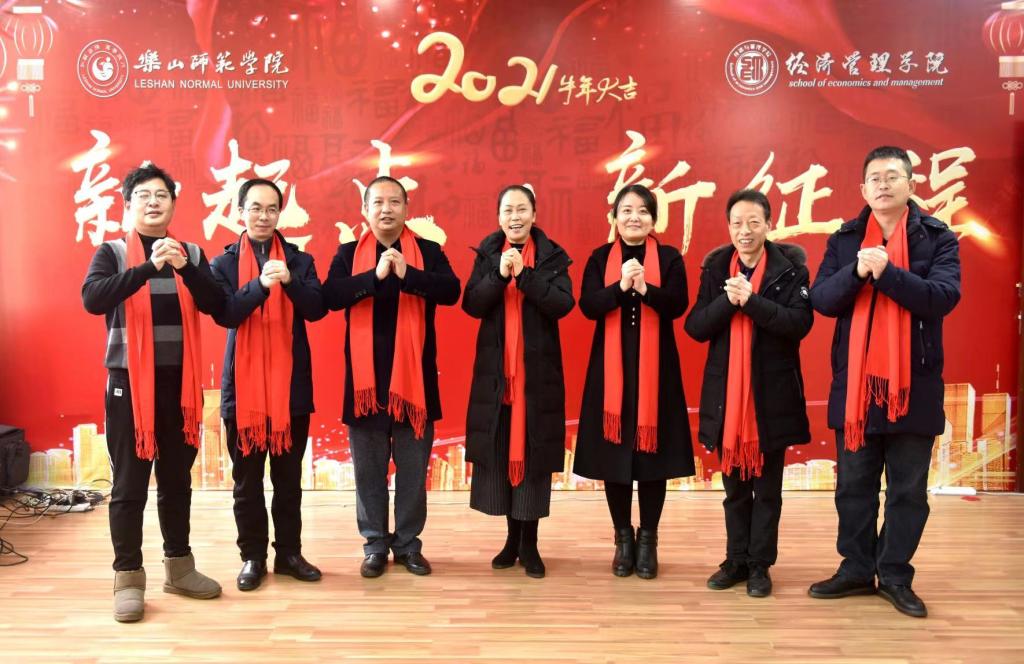 会上,邓健总结了过去一年学院所取得的成就,承办了首届四川省人力资源管理技能竞赛、多个科研中心升为省级基地、教研教改取得优秀成绩等等,过去的一年对全院师生来说都是极不平凡的一年,新冠肺炎疫情影响了我们正常的学习、工作和生活,但疫情挡不住我们前进的步伐,全院师生携手同行,取得了一个又一个成就。丁敏娜也表示对学院全体教职工一年工作的感谢,经管人将继续弘扬“敢为人先,臻于至善”的乐师精神,秉承“经济务实、管理维新”之院训,凝心聚力,以更努力的姿态迎新美好的明天。