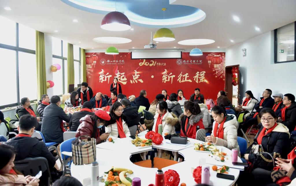 2021年1月9日上午,经管学院分工会在实训楼A区心理健康中心506活动室召开了年度总结及茶话会,与往年不同,学院以辞旧迎新团拜会的方式,在喜庆愉悦的氛围下召开了此次大会。学院全体教职工参加了此次会议,同时特邀了经管学院退休老教师和几位外籍院长参加。邓健、主持党务工作的党总支副书记丁敏娜分别作了主旨发言。