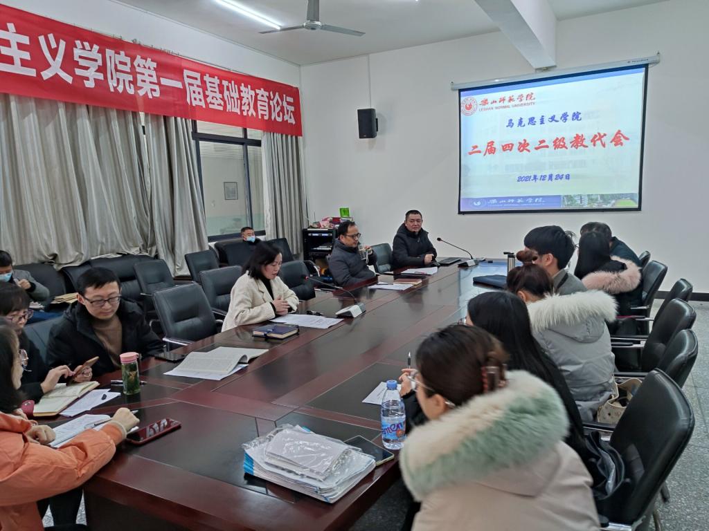 12月24日上午,马克思主义学院在实训楼B104召开了二届四次二级教代会,本次会议的议程有三项:1、审议《马克思主义学院2021年绩效津贴分配实施办法》;2、审议《马克思主义学院2021年科研分配方法》;3、通报2021年分工会开支情况。会议由党总支书记李涛主持。