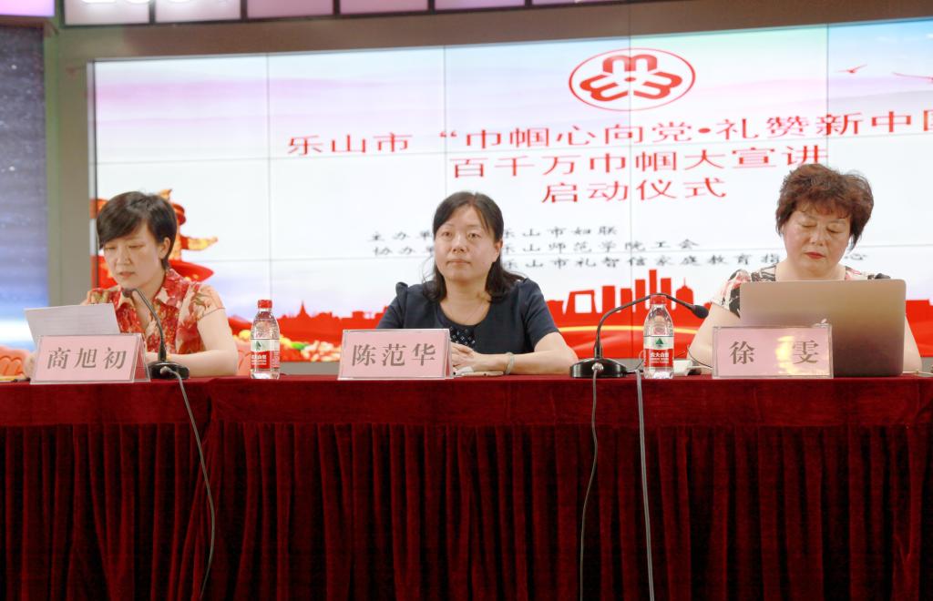 本网讯(图、文/李冉英)根据全国妇联、省妇联关于各级妇联庆祝建国70周年,开展优秀巾帼先进事迹进高校活动的相关文件要求,5月23日下午乐山市妇联、我校工会联合在我校旷怡楼学术报告厅举行了“巾帼心向党 礼赞新中国”百千万巾帼大宣讲启动仪式。我校已创建为全国巾帼文明岗的学生公寓中心、校医院全体教职工,正在创建全国、省、市巾帼文明岗的经管学院、教科学院、特教学院、外语学院、政法学院、物电学院的师生共270多人参加了大会。大会由乐山市妇联调研员童义华主持,乐山市妇联党组书记、主席商旭初、市妇联副主席黄治茹、徐雯、市级机关妇联主席等10多人出席会议。我校党委副书记、纪委书记陈范华应邀出席会议,